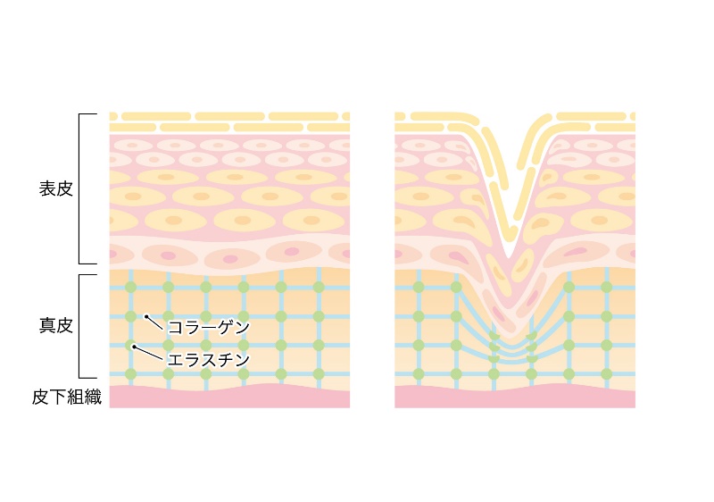 肌荒れが長期間続くと、コラーゲンやエラスチンが減少し、肌の弾力性が失われます。これにより、シワやたるみが進行しやすくなります。